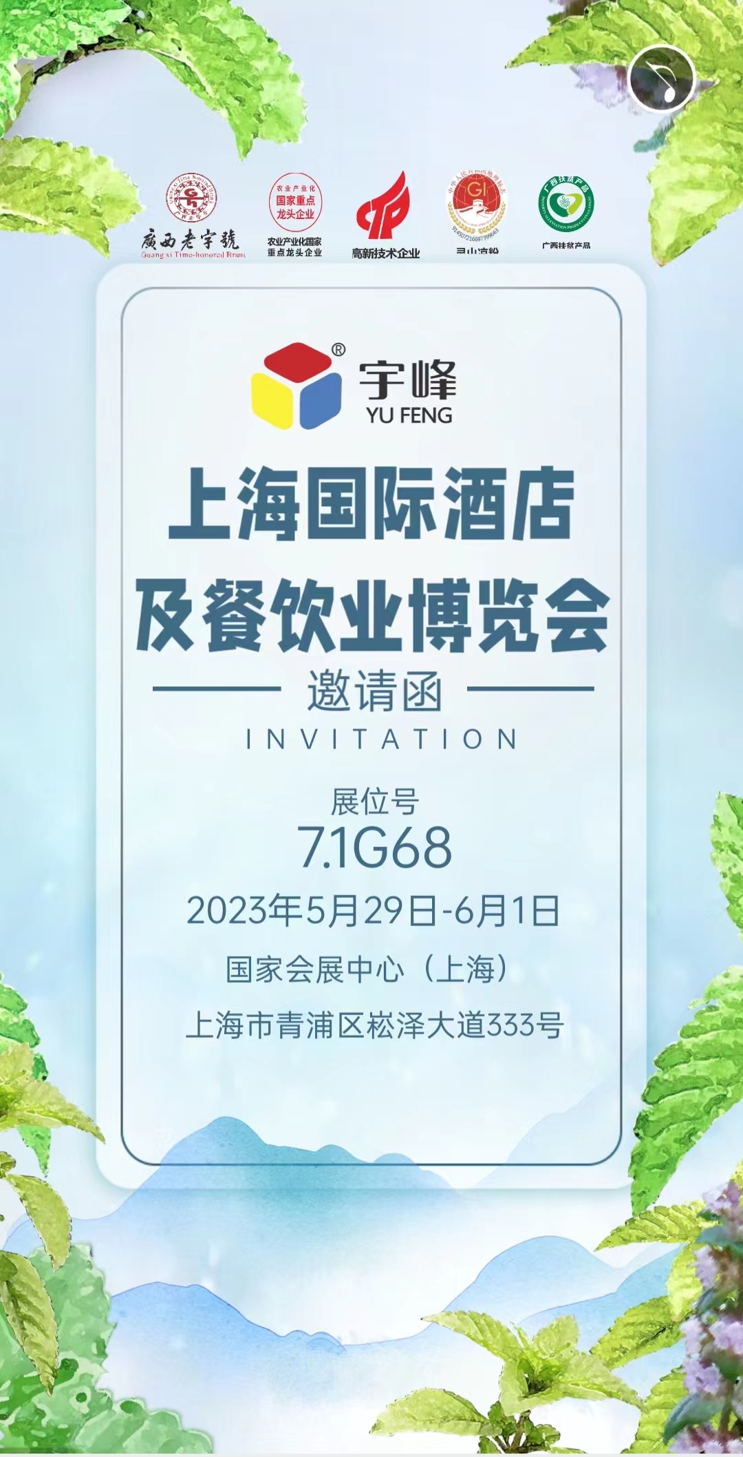 上海國際酒店及餐飲業(yè)博覽會,展位:7.1G68,2023年5月29日—6月1日,國際會展中心(上海),上海市青浦區(qū)崧澤大道333號