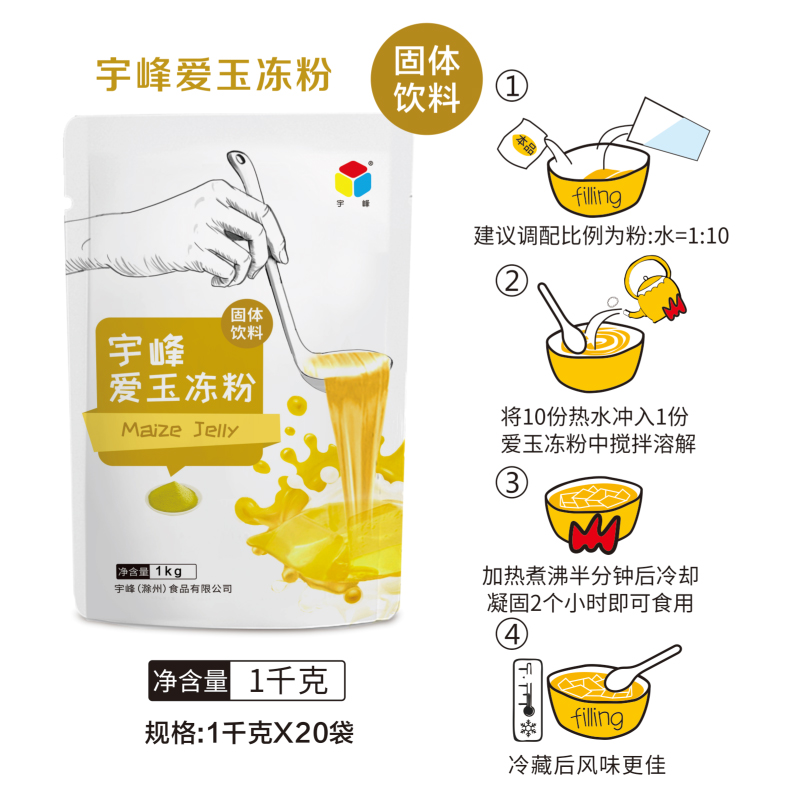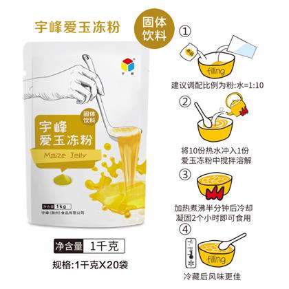 1.先把400ml水燒至沸騰,調(diào)至小火,倒入宇峰愛玉凍粉60g,攪拌到無顆粒,小火2分鐘后關(guān)火。