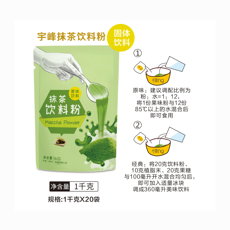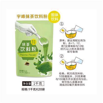 1.先用熱水150ml將30g宇峰抹茶粉充分攪拌均勻,無顆粒呈現,然后倒入冰塊150g降溫